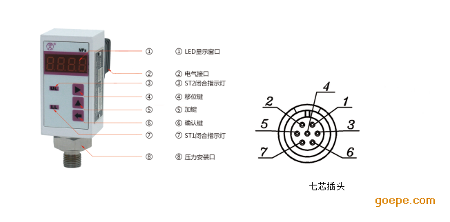(①回路起始状态)显示“ON”时,则此回路在压力上升且压力<ST1值时,输出状态为常闭或者DC24V;