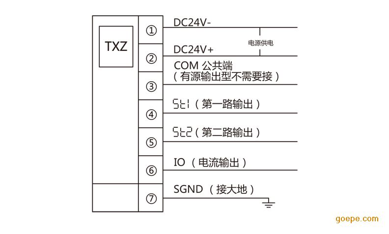 注:输出路数由选型决定,无多余路数不需要接线;电流输出由选型决定,没有无需接此线
