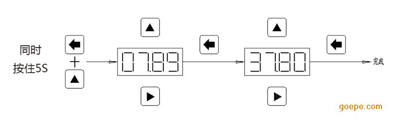 3、电流值微调 同时按住Å、加▲键5秒,大致显示4mA对应的DA值,按u键调小,▲键调大,调整后按Å键进入20mA微调,按u键调小,▲键调大,完成后按Å键退出,即完成电流微调。(注:出厂时已调整好,正常状况下无需微调。)