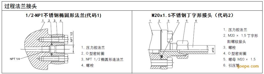 过程连接法兰的两端面有NPT 1/4 和UNF 7/16``内螺纹。