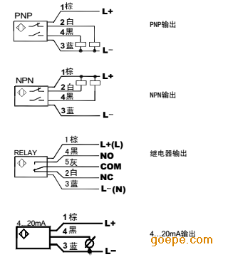 注:继电器型产品需采用5芯接插件,型号与四芯接插件类似