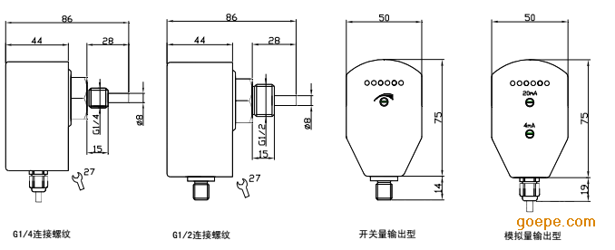 2)模拟量输出型只有M12接插件,交流供电性只有直接付线